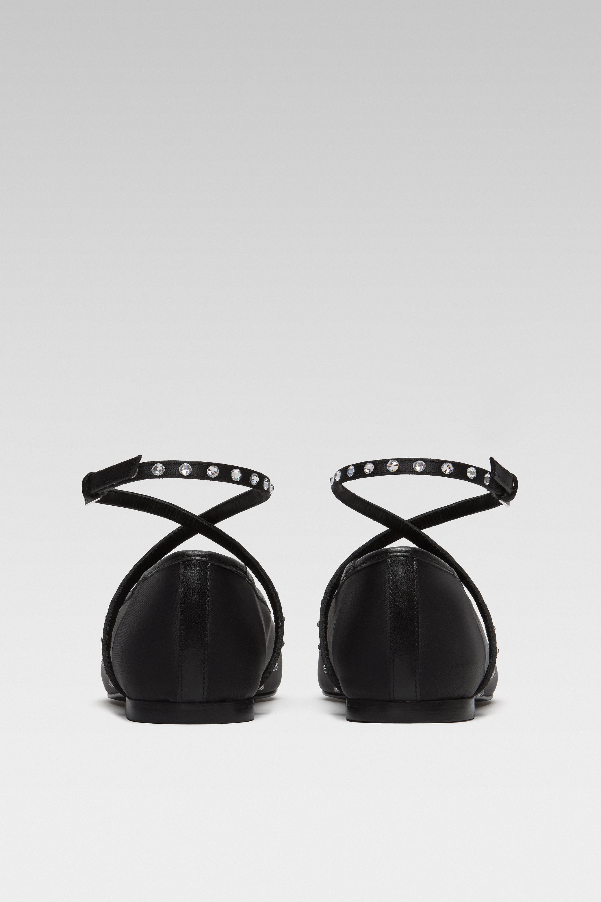 Crafted from satin, the Saturn Black Ballet Flat features crystal-embellished straps and a squared toe. Finished with EDLA's signature cosmic insoles.